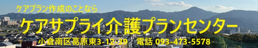 | 当事業所「ケアサプライ介護プランセンター」は2000年の2月に県の指定を受け、 介護保険が始まった2000年の4月に「ケアサプライ介護プランセンター」を開設しました。 それから24年目になりますが、現在、主任介護支援専門員2名を含め、5名のケアマネジャーで運営しています。 多くの事例を経験していますので、何かお困り事がありましたらご相談頂ければ幸甚です。 (電話)093-473-5578 〇ケアプランの作成をするのが居宅介護支援事業所(ケアサプライ介護プランセンター)の仕事です。 居宅介護支援というのは、介護保険を使うご利用者が可能な限りご自宅で自立した日常生活を送ることができるよう、ケアプランを立てるというのが仕事です。