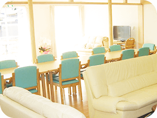 集まって楽しく過ごせるデイルームです。日々のアクティビティ、催しごと、季節の行事などもこちらで行っています。